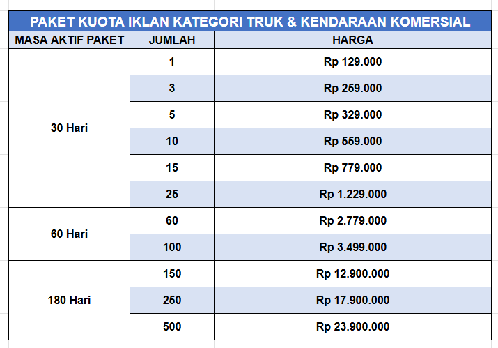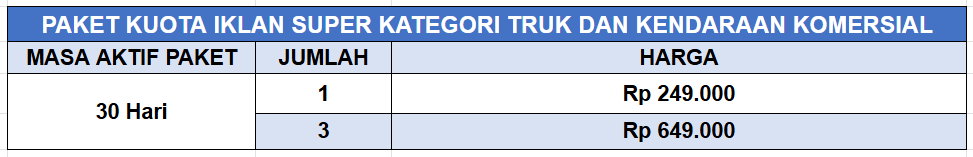 - Kuota Iklan Super : Kategori Truk & Kendaraaan Komersial