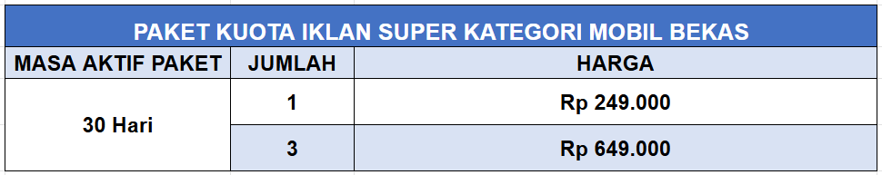 - Kuota Iklan Super: Kategori Mobil Bekas
